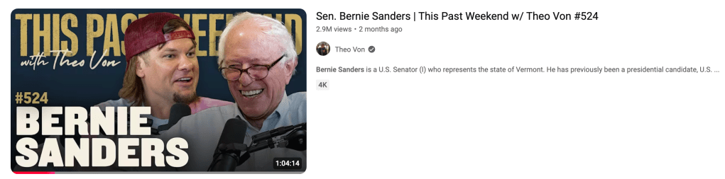 Oh really? You need a candidate with broad popular appeal, who polls better than Trump, who is willing and able to go into the podcast space? Someone who is comfortable enough with their beliefs and their ability to bring people along with them over the course of an hour long podcast? Someone who is able to bring people in from across the political spectrum? Someone who doesn’t really play the intersectional game, and has broad base appeal even to young men? Someone who values and wants to support the working class? Whoever could do that? Where on earth could we possibly find this person?